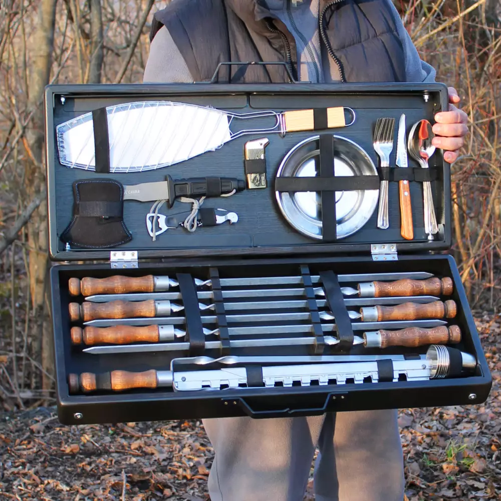 | Тип назначение | Набір шампурів у коробці "БУКОВИНА" Шашличний набір у кейсі подарунковий для гриля й барбекю |